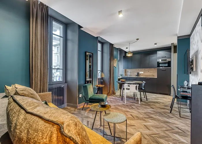 Do użytku gości pełnowymiarowa kuchnia. W odległości w malej odległości znajduje się restauracja Les Voutes, serwująca dania kuchni francuskiej. Od tego apartamentu do przystanku autobusowego Boulevard Wilson około 5 min pieszo.